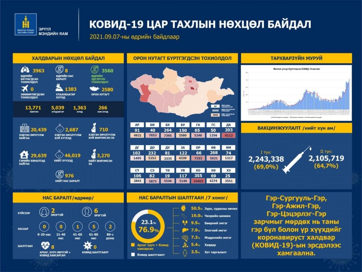 КОРОНАВИРУСТ ХАЛДВАР (COVID-19)-ЫН НӨХЦӨЛ БАЙДЛЫН МЭДЭЭ /2021.09.07/