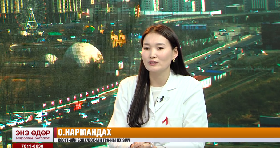 Дэлхий нийтээрээ ХДХВ, ДОХ-ын асуудалд анхаарал хандуулах өдөр ТV-9 телевизээр ХӨСҮТ-ийн БЗДХ/ДОХ-ын ТСА-ны их эмч О.Нармандах оролцлоо