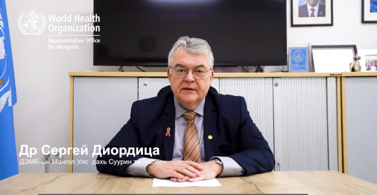 ДЭМБ-ын Монгол улс дахь суурин төлөөлөгч Др Сергей Диордица 12 дугаар сарын 01 ны " Дэлхий нийтээр ХДХВ, ДОХ-ын асуудалд анхаарал хандуулах өдөр” үг хэллээ