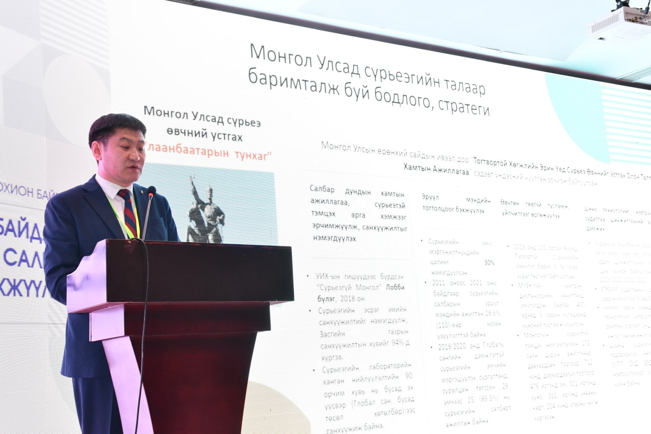2018-аас 2022 онуудад Булган аймгийн Булган сум, Хөвсгөл аймгийн Мөрөн сум, Дорноговь аймгийн Сайншанд сум зэрэг хүн ам олноор төвлөрсөн, дотоодын шилжилт хөдөлгөөн, аялал жуулчлал ихтэй, сүрьеэгийн өвчлөл өндөртэй орон нутагт Халдварт болон сүрьеэгийн 30 ор бүхий эмнэлгийг ашиглалтад ороод байгааг тэрээр дурдаад Дэлхийн эрүүл мэндийн байгууллагаас зөвлөмж болгож буй сүрьеэгийн оношилгоо, эмчилгээний заавар удирдамжийг богино хугацаанд өөрийн оронд хэрэгжүүлж олон эмд тэсвэртэй сүрьеэтэй үйлчлүүлэгчийн 60 хувь нь богино горимоор эмчлэгдэж байгаа нь энэхүү горимыг амжилттай нэвтрүүлсэн орнуудыг Монгол улс түүчээлж байгааг онцоллоо. Манай улсын СТРИМ багийн судлаачид энэхүү эмчилгээний горимыг дэлхий дахинд нэвтрүүлэхэд чухал үүрэг гүйцэтгэсэнд баяр хүргэлээ. Сүрьеэгийн урьдчилан сэргийлэлт, эмчилгээнд эмийн чанар, аюулгүй, найдвартай байдал нэн тэргүүнд тавигдах асуудал бөгөөд Монгол Улсын Засгийн газар үүнд онцгой анхаарал хандуулж, ДЭМБ-ын стандартын шаардлага хангасан сүрьеэгийн эмийг Олон улсын байгууллагаас шууд гэрээгээр худалдан авах боломжийг Засгийн газрын 415 дугаар тогтоолоор баталгаажуулж, 2018 оноос Монгол Улсын зайлшгүй шаардлагатай эмийн жагсаалтад сүрьеэгийн 2-р эгнээний эмүүдийг нэмж, 2019 оноос Бодлогоор бүртгэх эмийн жагсаалтад Монгол Улсын эмийн бүртгэлгүй сүрьеэгийн эмүүдийг оруулж жил бүр шинэчилж байна. Эмд мэдрэг сүрьеэгийн эмийн санхүүжилтийг 100 хувь Улсын төсвөөс, харин эмд тэсвэртэй сүрьеэгийн эмийн санхүүжилтийг 2017 оныг хүртэл 100 хувь Глобал сангаас хариуцаж байсан бол 2017-2020 оны төслийн жилээс санхүүжилтийг Монгол Улсын Засгийн газарт аажмаар шилжүүлж, өнөөдрийн байдлаар 20 хувийг хариуцаж байгааг тэрээр мөн дурдлаа.