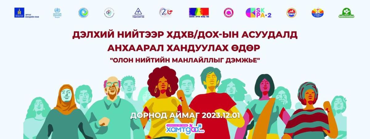 Энэ жил манай улс "ХДХВ, ДОХ-ын асуудалд анхаарал хандуулах өдөр"-ийг "Олон Нийтийн Манлайллыг Дэмжье" уриан дор тэмдэглэн өнгөрүүлэх гэж байна.