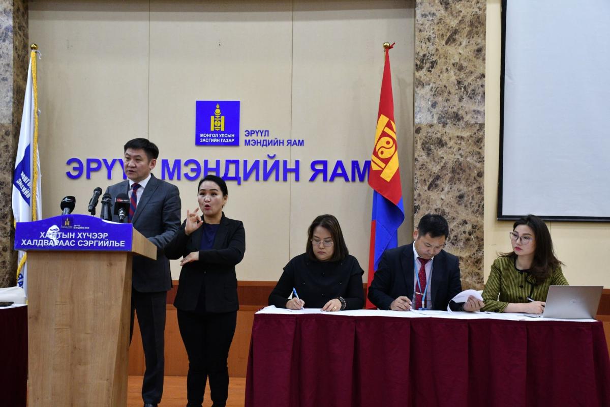 “НИЙГМИЙН ЭРҮҮЛ МЭНДИЙН НОЦТОЙ БАЙДЛЫН ҮЕД СҮРЬЕЭГИЙН ТУСЛАМЖ , ҮЙЛЧИЛГЭЭНД САЛБАР ХООРОНДЫН ХАМТЫН АЖИЛЛАГААГ БЭХЖҮҮЛЭХ НЬ” СЭДЭВТ ДЭЭД ХЭМЖЭЭНИЙ ЧУУЛГАН БОЛНО